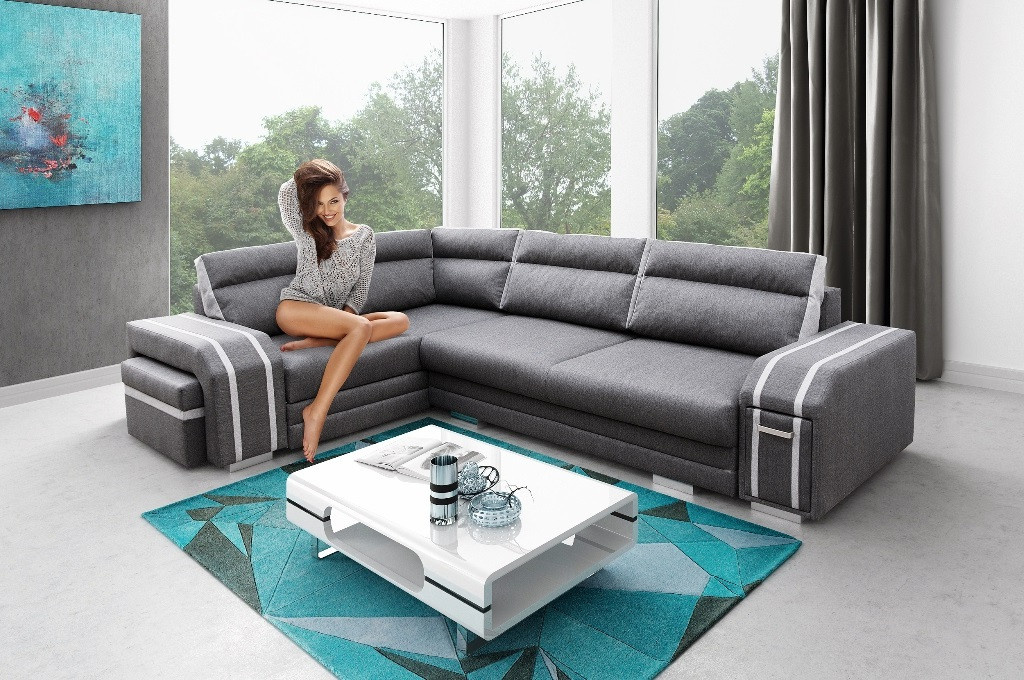 Moderní model rohové soupravy Avatar je čalouněný látkou, která je k dispozici v široké škále barev a druhů látek.