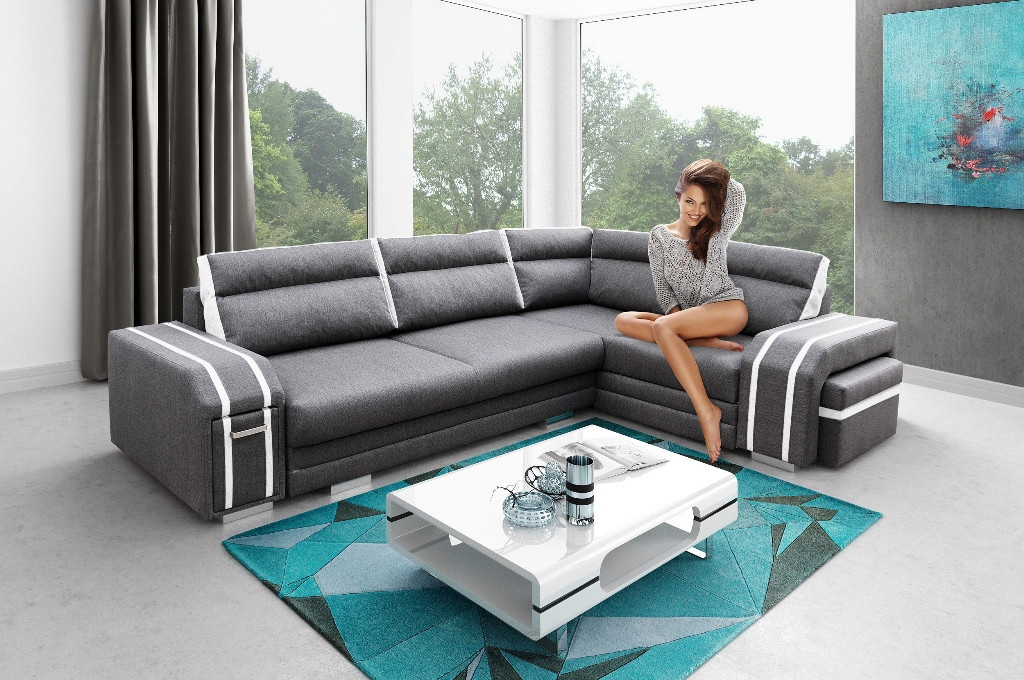 AVATAR je rozkládací rohová pohovka, která je k dispozici v pravém i levém provedení. Rozměrná konstrukce má dva úložné prostory na lůžkoviny, do kterých lze uložit nejen přikrývky, peřiny a polštáře, ale také další nezbytné věci denní potřeby. Rohová pohovka s funkcí spaní se rozkládá, takže na ní můžete pohodlně a bezpečně přespat. Rozkládací konstrukce má vestavěný úložný prostor pro drobné příslušenství a praktický taburet, pro který je v rohu zabudován speciální úložný prostor. Moderní rohová sedací souprava s minimalistickými vložkami zaujme svým originálním designem, který nikdo nepřejde lhostejně. Nábytek lze čalounit látkou, ekokůží. Model AVATAR s chromovanými nohami je vyplněn vlnitými pružinami a čalounickou pěnou, které zajišťují správnou pružnost sedadla. Za příplatek je možné vyrobit rohovou pohovku se dvěma pufy a zásuvkami. Rohovou sedací soupravu AVATAR pro více osob lze vyrobit v široké škále barev, takže si každý najde variantu, která vyhovuje jeho individuálním preferencím.