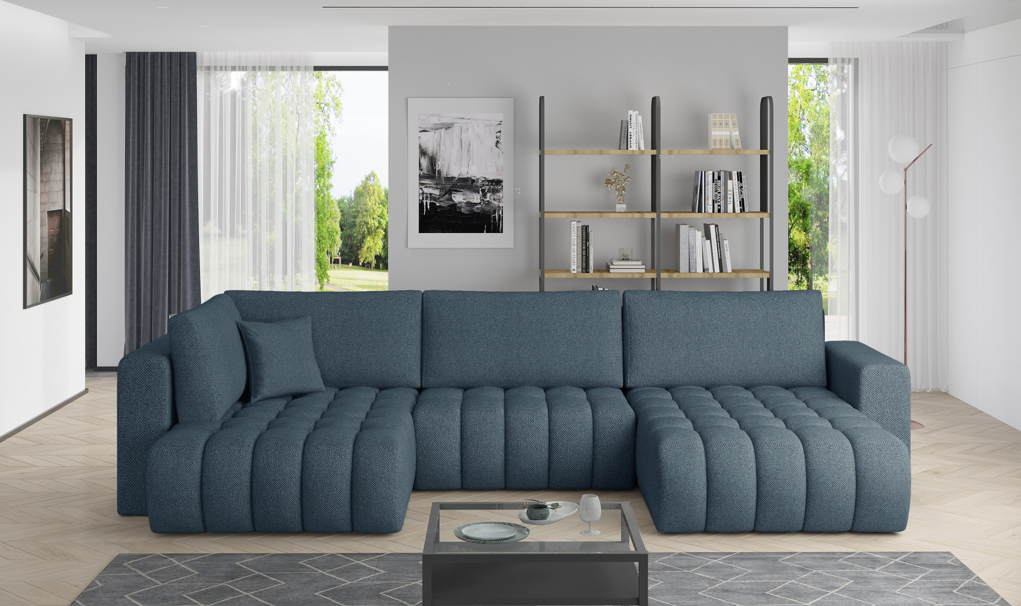 - možnost ustavení sedací soupravy do prostoru - záda sedací soupravy jsou očalouněny stejnou potahovou látkou