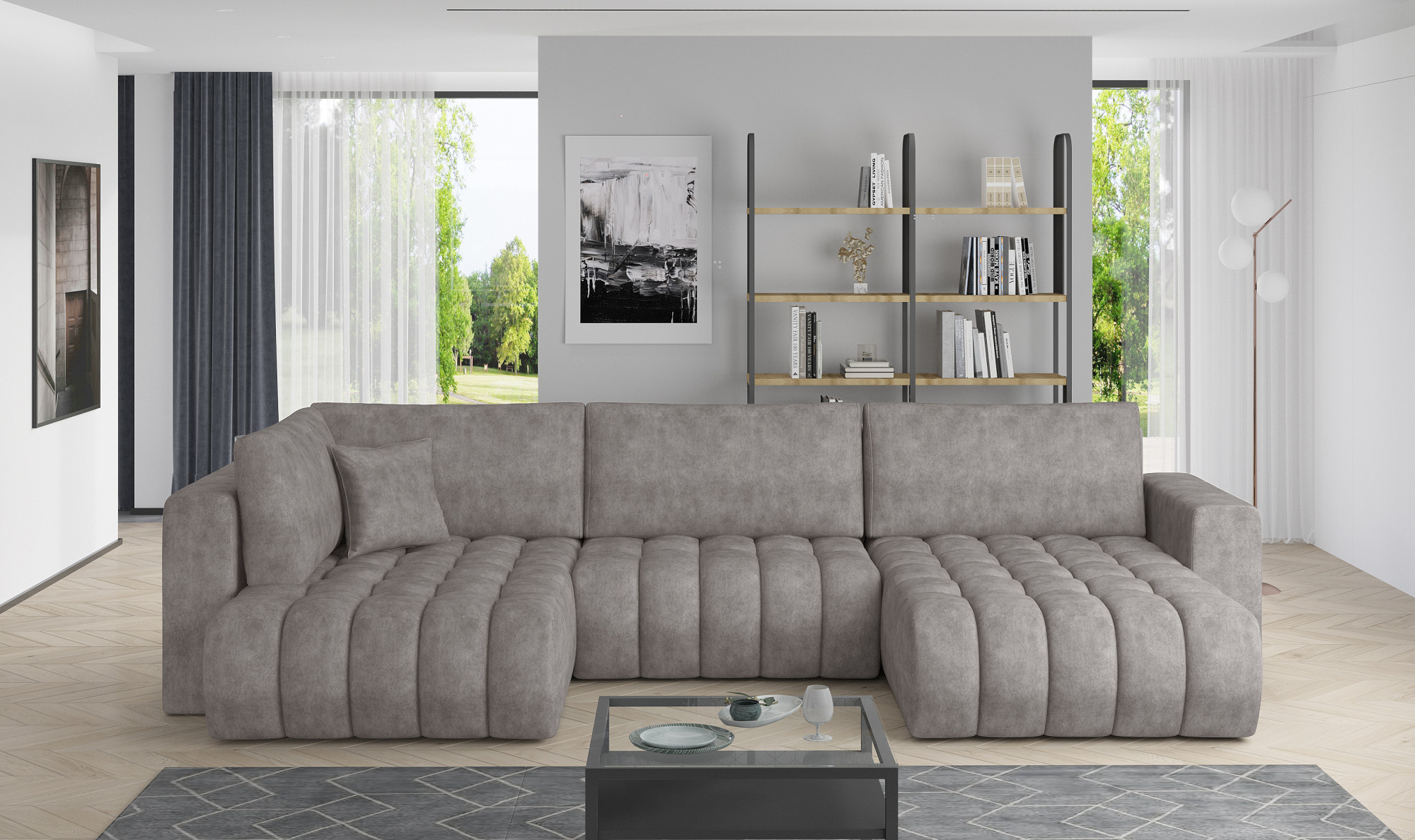 - možnost ustavení sedací soupravy do prostoru - záda sedací soupravy jsou očalouněny stejnou potahovou látkou