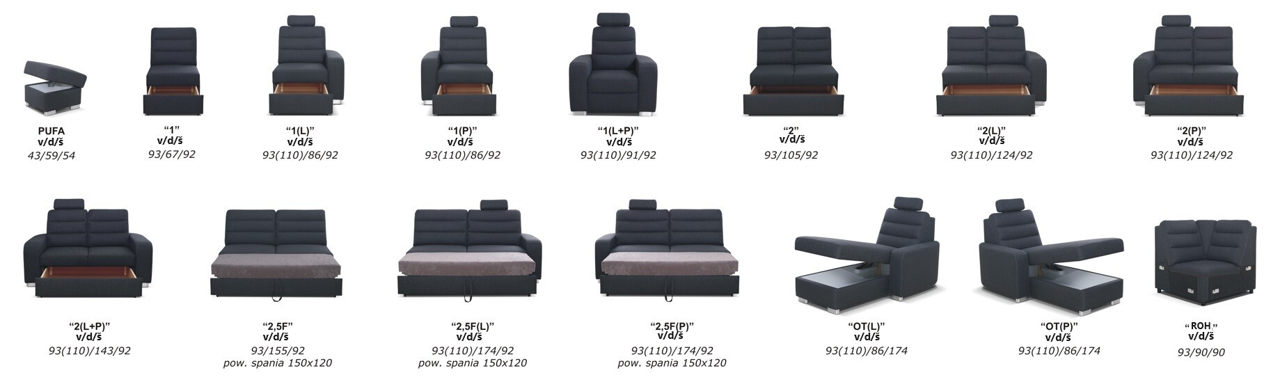 Rohová sedací souprava BROADWAY OT(P)-2,5F-R-2(L)