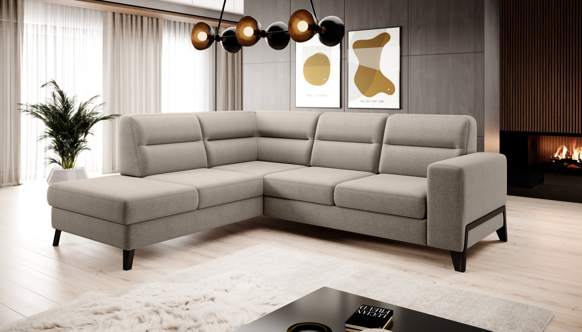 - možnost ustavení sedací soupravy do prostoru - záda sedací soupravy jsou očalouněny stejnou potahovou látkou