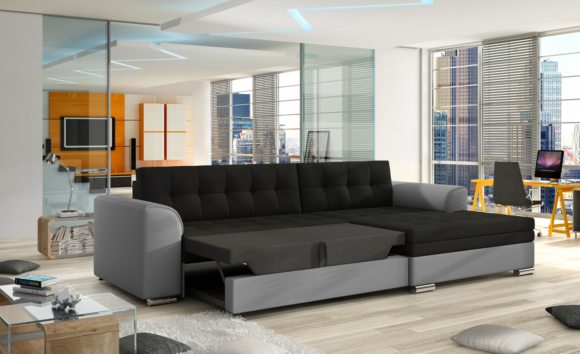 - v základní variantě jsou záda sedací soupravy očalouněny do černé látky (nemožnost ustavení do prostoru)