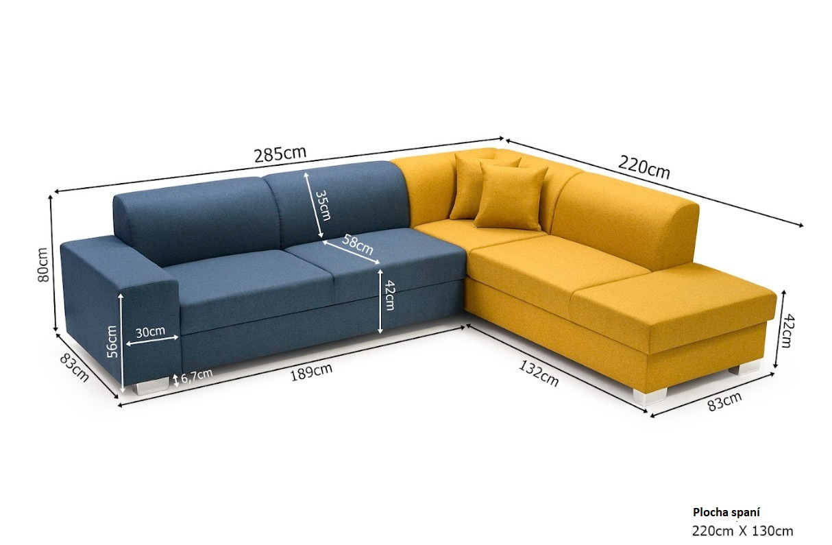- rohová pohovka je k dispozici v pravém nebo levém provedení