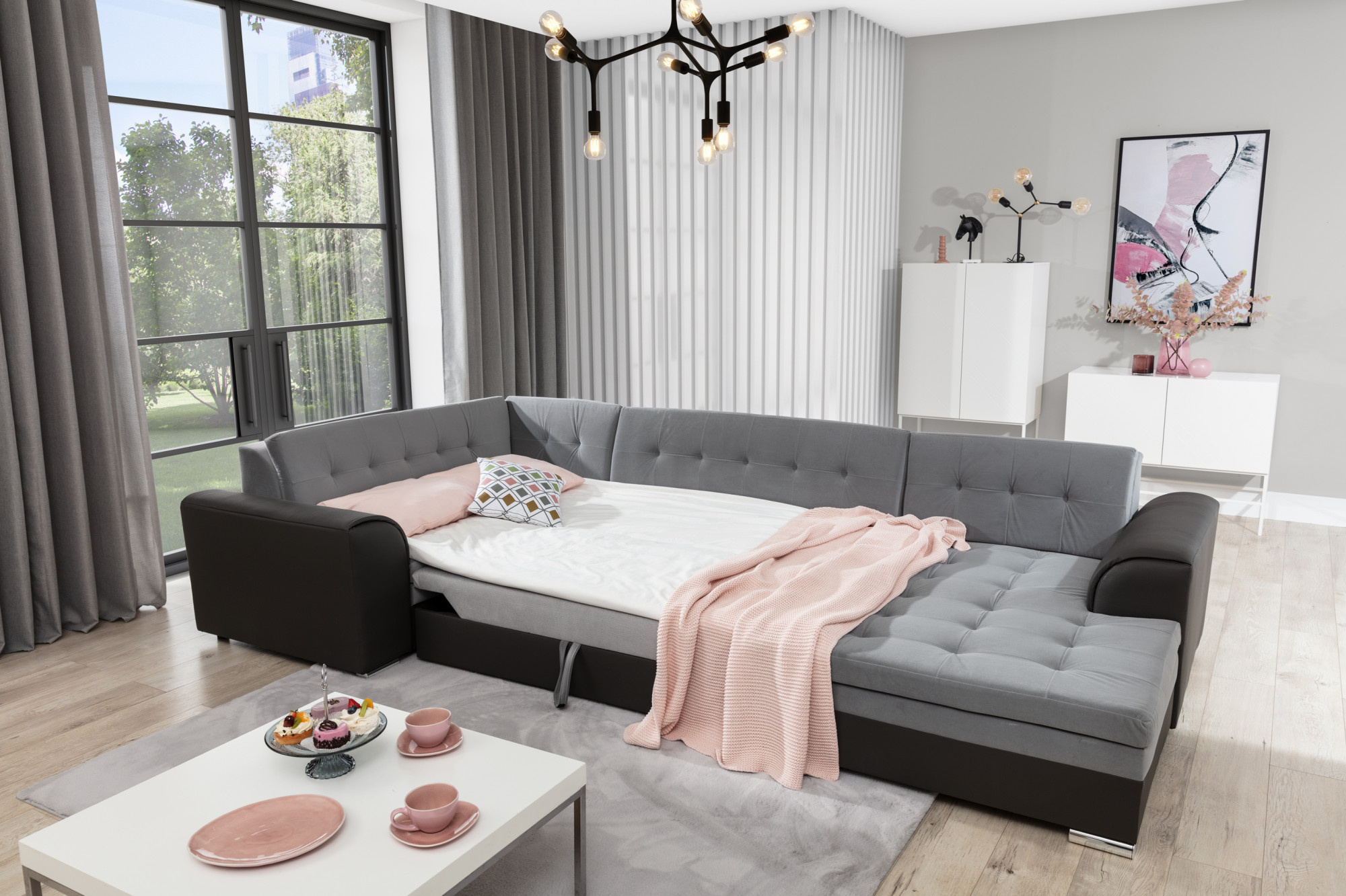 Jednou z hlavních předností sedací soupravy DAMARIO je její rozkládací funkce. S jednoduchým mechanismem můžete snadno přeměnit tuto soupravu na pohodlné lůžko s plochou na spaní o rozměrech 126 x 275 cm. To je ideální řešení pro nečekané návštěvy nebo pro ty, kteří si rádi dopřejí odpolední odpočinek.