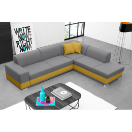 Rozměrná rohová sedací souprava DARCO je moderní sedací souprava ve tvaru L, kterou lze přizpůsobit dané místnosti díky možnosti výběru pravé nebo levé strany rohové sedací soupravy. Nádoba na lůžkoviny je u modelu DARCO k dispozici v bočním modulu, díky čemuž k ní bude mít každý uživatel snadný přístup - přikrývku, polštáře nebo jiné potřebné příslušenství lze kdykoli vyjmout. Rozkládací rohová pohovka s funkcí spaní se rozkládá, takže její uživatelé získají pohodlí a bezpečný spánek. Nábytek stojí na dřevěném rámu a dřevěných nohách, které jsou zárukou odolnosti, pevnosti a stability konstrukce. Moderní rohová sedací souprava DARCO je vyplněna vlnitou pružinou a čalounickou pěnou, díky čemuž jsou sedák a opěrák dostatečně pružné - nevznikají na nich nevzhledné promáčkliny ani deformace. U modelu DARCO jsou k dispozici dekorativní polštáře. Čalounění prezentovaného modelu lze vybrat podle individuálních preferencí z dostupného vzorníku barev.
