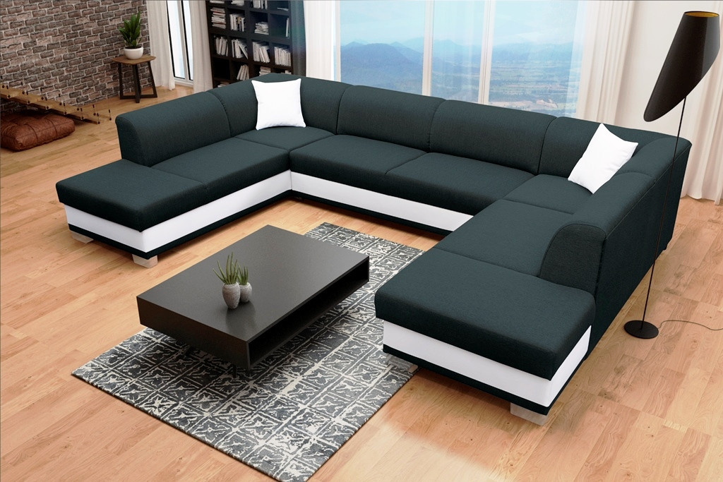 Stylová rohová pohovka DARCO do U je rozkládací pohovka, která se skvěle hodí do velkých obývacích pokojů - díky čalouněnému opěradlu ji lze umístit do jejich střední části. Dřevěný rám, který zajišťuje odolnost a stabilitu nábytku, je čalouněný látkou, jejíž povrchovou úpravu si můžete vybrat z barev dostupných ve vzorníku. Sedák je spolu s mírně profilovaným opěradlem vyplněn vlnitou pružinou a čalounickou pěnou T-30, která díky své zvýšené pružnosti zabrání vzniku nevzhledných promáčklin na nábytku. Všestranná rohová pohovka ve tvaru U je víceúčelový kus nábytku, který se vyznačuje moderním provedením zvýrazněným chromovanými nožkami a dekorativními polštáři, které jsou k dispozici jako součást soupravy. Volně stojící nábytek DARCO U je vybaven dvěma úložnými prostory a má také funkci spaní, díky níž lze nábytek bez bočnic rozložit. Model DARCO U se vyrábí také na individuální objednávku, takže je možné zvolit barvu rohových vložek.