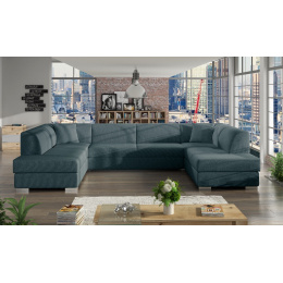 Stylová rohová pohovka DARCO do U je rozkládací pohovka, která se skvěle hodí do velkých obývacích pokojů - díky čalouněnému opěradlu ji lze umístit do jejich střední části. Dřevěný rám, který zajišťuje odolnost a stabilitu nábytku, je čalouněný látkou, jejíž povrchovou úpravu si můžete vybrat z barev dostupných ve vzorníku. Sedák je spolu s mírně profilovaným opěradlem vyplněn vlnitou pružinou a čalounickou pěnou T-30, která díky své zvýšené pružnosti zabrání vzniku nevzhledných promáčklin na nábytku. Všestranná rohová pohovka ve tvaru U je víceúčelový kus nábytku, který se vyznačuje moderním provedením zvýrazněným chromovanými nožkami a dekorativními polštáři, které jsou k dispozici jako součást soupravy. Volně stojící nábytek DARCO U je vybaven dvěma úložnými prostory a má také funkci spaní, díky níž lze nábytek bez bočnic rozložit. Model DARCO U se vyrábí také na individuální objednávku, takže je možné zvolit barvu rohových vložek.