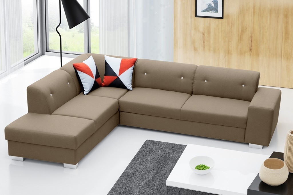 Rohová sedací souprava Digi je vyrobena v jednoduché lini s nádechem retro stylu. Je vhodná do každého interiéru a stane se příjemným centrem odpočinku a setkání s rodinou nebo přáteli. Sedáky jsou vyplněny kombinací pružin a PUR pěny a díky tomu je sedací souprava velice pohodlná. Samozřejmostí je možnost rozložení pro příležitostné přespání návštěvy a úložný prostor např. na lůžkoviny. Retro nádech zdůrazňují knoflíky na opěradle, které jsou v kontrastní barvě a krásně tak vyniknou. Sedací soupravu nabízíme v levém i pravém provedení a v několika oblíbených barvách. V ceně sedací soupravy jsou dva vzorované polštářky, které jsou vyobrazené na fotografii. Ostatní vyobrazené doplňky a dekorace nejsou v ceně.