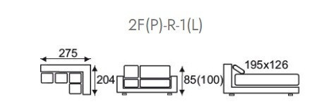 1+R+2F: 275 x 204, v. 85-100 cm (spací plocha: 195 x 126 cm)