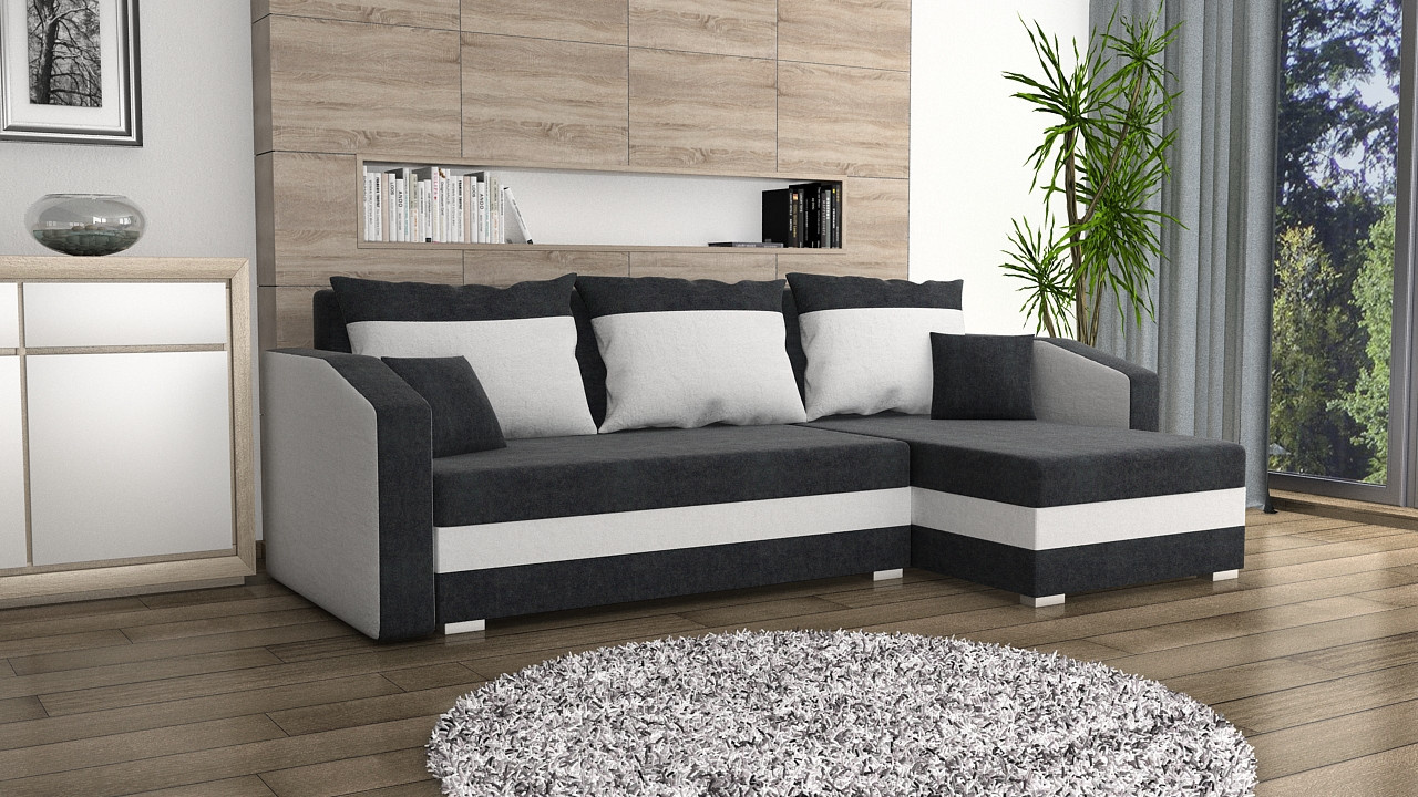 Sedací souprava Fabian je příjemným spojením elegance, funkčnosti a příznivé ceny. Sedací souprava je vyrobená v jednoduchém nadčasovém designu. Díky svým rozměrům je vhodná i do menších pokojů. Je velmi pohodlná a zároveň praktická. Velkou předností sedací soupravy, je univerzální použití. Tzn., že si ji můžete podle potřeby sestavit jako levou nebo pravou, což je výhoda při zařizování obývacího pokoje. Nemusíte přemýšlet, do jakého rohu sedací soupravu postavíte. Jednoduše si ji podle potřeby přizpůsobíte. Výplň sedáku tvoří kvalitní PUR pěna. Praktickou stránku sedací soupravy zajišťuje možnost rozložení k občasnému přespání návštěvy a samozřejmostí je i úložný prostor. Sedací soupravu nabízíme v několika barevných provedeních. Vyobrazené doplňky a dekorace nejsou v ceně. Zobrazení barev na fotografii se může od skutečnosti lišit. Výška nožek je 2,8 cm.