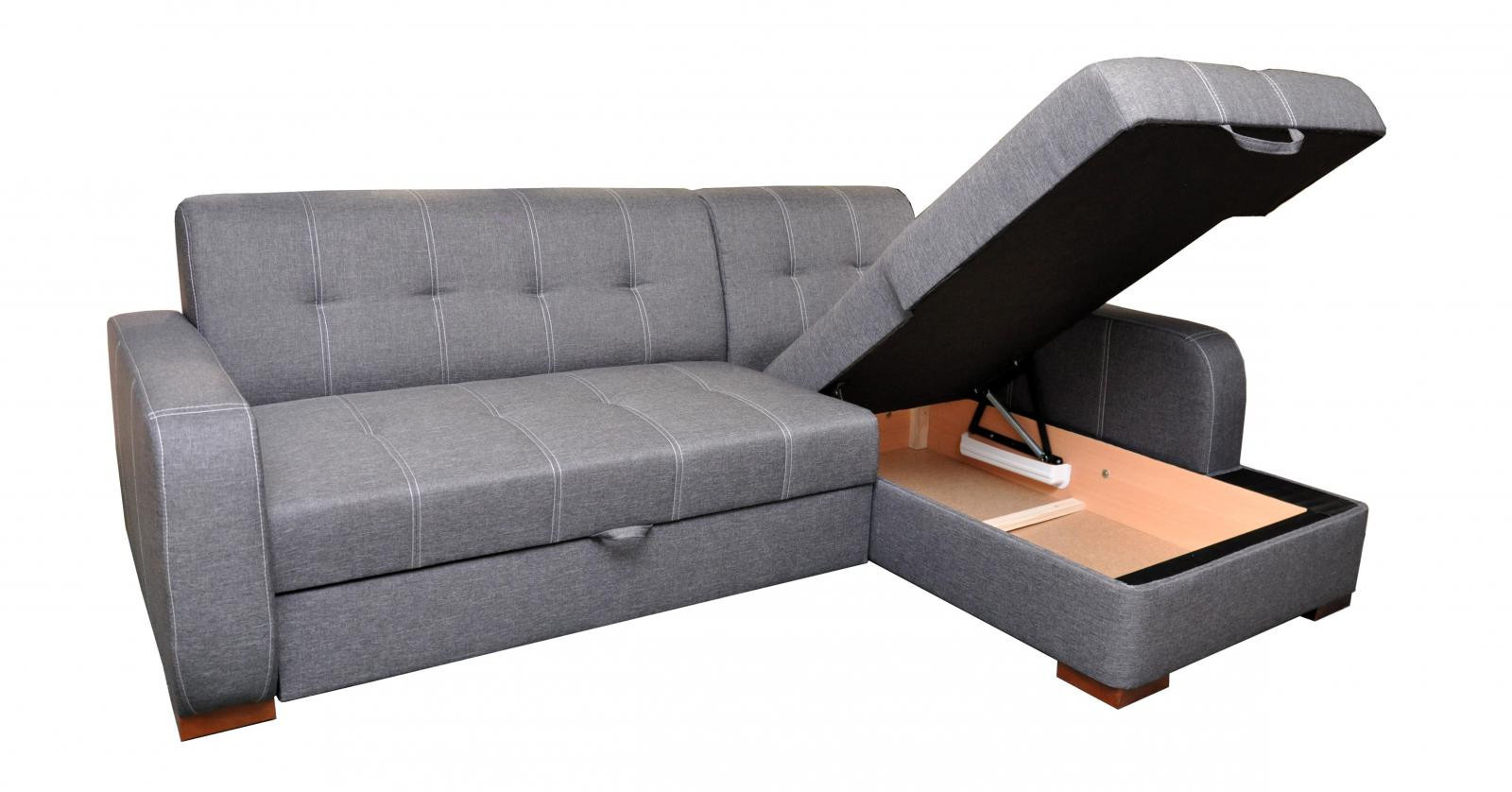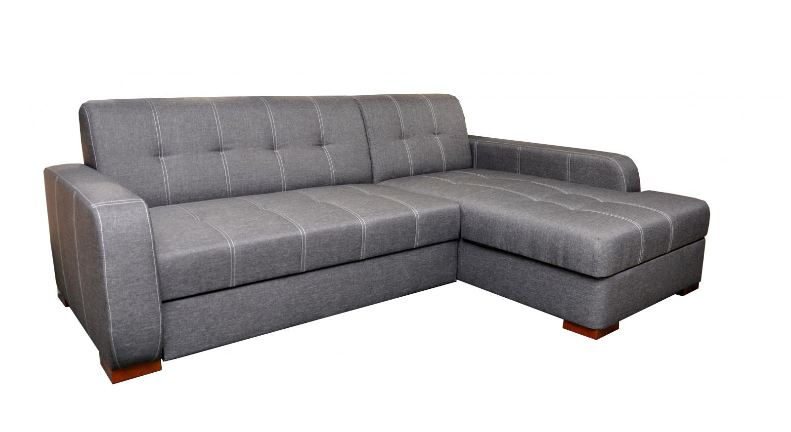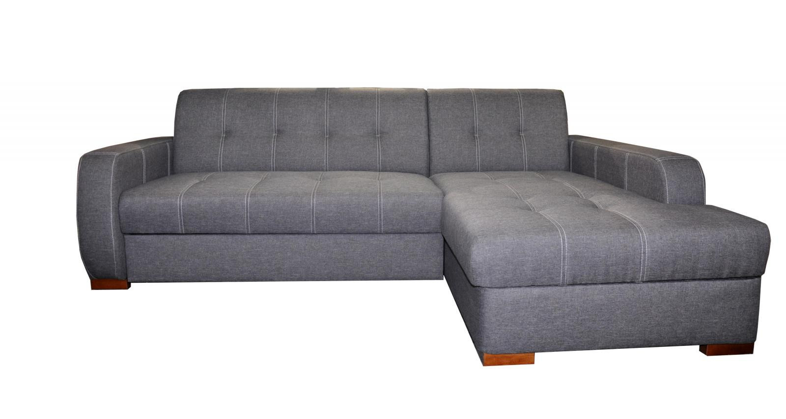 Moderní rohová sedací souprava Falco je rozkládací, jednoduchým rozkladem vznikne lůžko vhodné k příležitostnému spaní. Sedačka má praktický úložný prostor. Sedací souprava má originální kontrastní prošívání na sedácích. Sedací souprava je vyrobena z dřevěného masivu, vnitřek sedačky je vyroben použitím vinutých pružin v kombinaci s kvalitní PUR pěnou gramáže 30. Sedací souprava je potažena kvalitní potahovou látkou Sawana 05, vybírat můžete ze 3 barevných provedení. Na malých ilustračních fotografiích je zobrazen způsob rozkladu a lůžka. K sedací soupravě je možno dokoupit křeslo a polštáře.