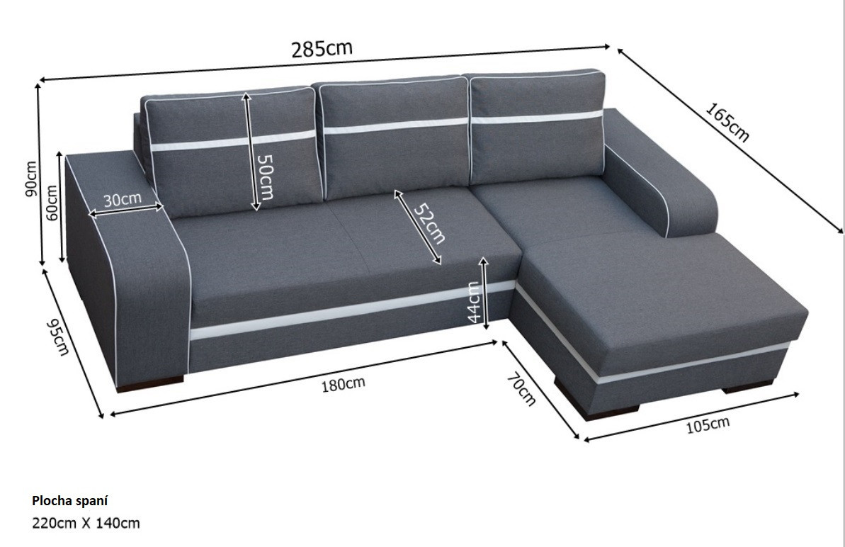 - rohová pohovka je k dispozici v pravém nebo levém provedení