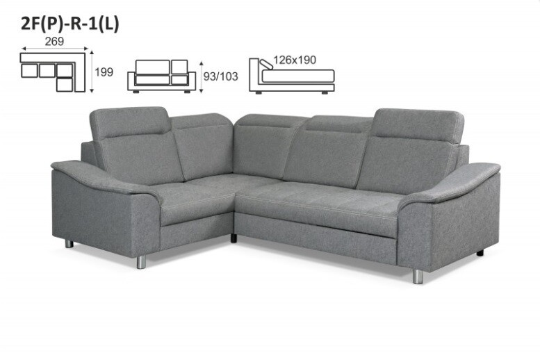 h199 x š269, v.93-103 cm (rozměr spaní 190 x 126 cm)