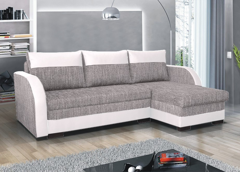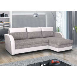 Univerzální sedací souprava Jarda 230x142 cm, lze sestavit jako levou nebo pravou, což je výhoda při sestavování pokoje, nemusíte přemýšlet do jakého rohu postavíte sedací soupravu, jednoduše ji přizpůsobíte. Souprava má úložný prostor a jednoduchý rozklad na spaní. Plocha na spaní je 200x125cm. Je potažena kvalitním úpletem hnědobéžové barvy v kombinaci s bílou koženkou. Polštáře jsou volně ložené.