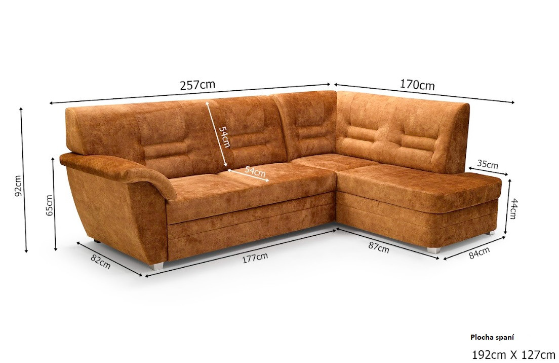 - rohová pohovka je k dispozici v pravém nebo levém provedení