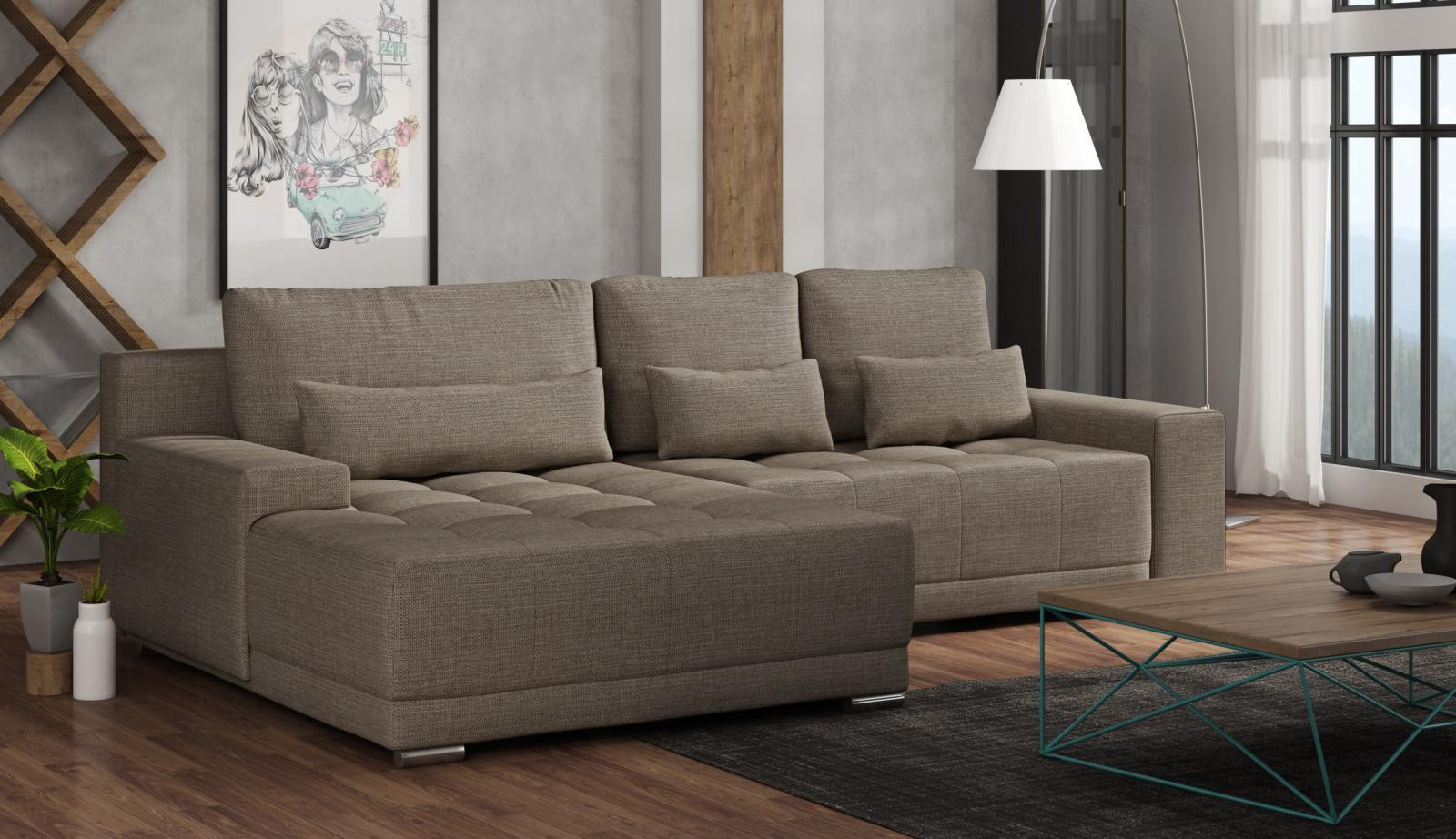 Sedací souprava Lacom MAX výborně zapadne do moderního i klasického interiéru. Její velkou předností je pohodlí, praktičnost a univerzální použití. Tzn. že si ji můžete podle potřeby sestavit jako levou nebo pravou, což je výhoda při zařizování obývacího pokoje. Nemusíte přemýšlet do jakého rohu postavíte sedací soupravu, jednoduše ji podle potřeby přizpůsobíte. Sedací souprava je rozkládací a může tak sloužit k občasnému přespání Vaší návštěvy. Samozřejmostí je i praktický úložný prostor, který můžete využít např. na lůžkoviny. Sedací souprava je potažena kvalitní látkou a nabízíme ji v několika trendy odstínech. Výplň sedáků tvoří kombinace pružin s kvalitní PUR pěnou, což zajišťuje velmi pohodlné sezení. Součástí sedací soupravy jsou tři velké opěrné a tři malé dekorační polštáře. Vyobrazené doplňky a dekorace nejsou v ceně.