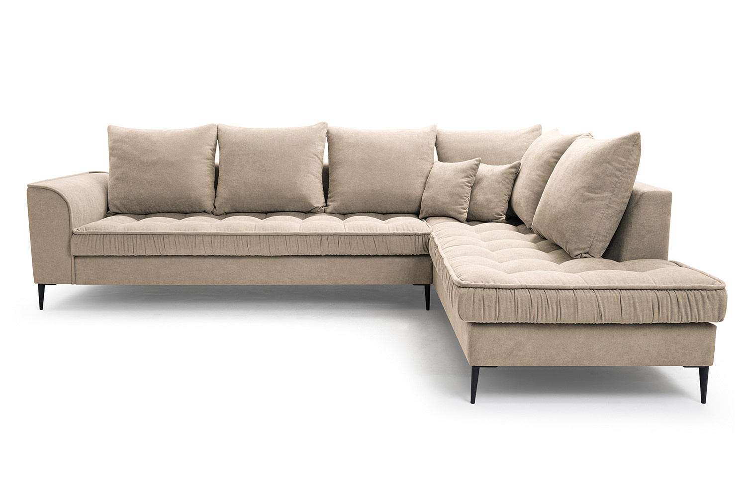 Prošívaná rohová pohovka LENA je kus nábytku ve skandinávském stylu. Skvěle se hodí do moderních i tradičnějších interiérů. Silikonová vložka s kuličkami použitá na sedadle zajišťuje neuvěřitelné pohodlí. Vysoké, pevné nohy jsou skvělým vizuálním doplňkem. Díky výplni z kvalitní vlnité pružiny a PU pěny je komfort odpočinku znatelně vysoký. Rohová sedací souprava LENA je kus nábytku, který dokonale zapadne do každého interiéru. Díky široké nabídce látek a barev si jistě vyberete něco podle svého vkusu.