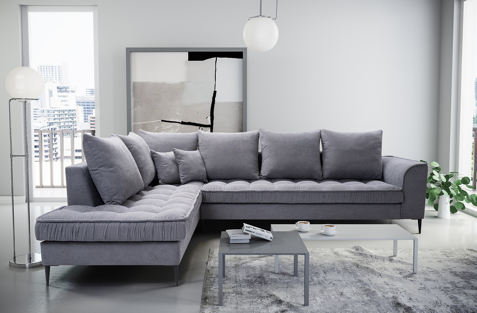 Prošívaná rohová pohovka LENA je kus nábytku ve skandinávském stylu. Skvěle se hodí do moderních i tradičnějších interiérů. Silikonová vložka s kuličkami použitá na sedadle zajišťuje neuvěřitelné pohodlí. Vysoké, pevné nohy jsou skvělým vizuálním doplňkem. Díky výplni z kvalitní vlnité pružiny a PU pěny je komfort odpočinku znatelně vysoký. Rohová sedací souprava LENA je kus nábytku, který dokonale zapadne do každého interiéru. Díky široké nabídce látek a barev si jistě vyberete něco podle svého vkusu.