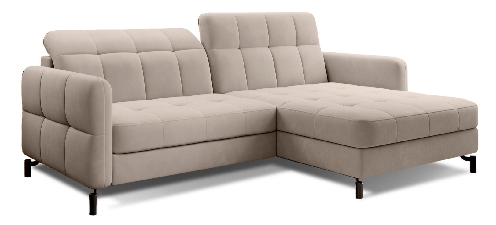 Lorelle is a stylish, elegant and modern corner sofa for our times, which is not only a functional piece of furniture, but can also work perfectly as an apartment decoration. L-shaped Lorelle - with dimensions of 225 x 160 x 105 cm - guarantees spaciousness and comfort during the day, as well as maximum comfort on the sleeping surface of 200 x 110 cm - at night. Thanks to the automatic and intuitive dolphin-type mechanism, unfolding the bed to the sleeping function is pleasant and completely uncomplicated. The advantage of this model is also the capacious storage compartment - a place for bedding - which is located in the ottoman. Positive sensations are enhanced by the way the furniture is made through a B-type corrugated spring, as well as HR + T25 foam, thanks to which the body is stabilized and properly supported while resting. Such a combination provides users, a sense of maximum comfort. Among the distinguishing features of this model, we can certainly include careful, modern finishing, a wide choice of colors, as well as original, stylish black legs of irregular shape. If you are looking for a breath of freshness and an interesting, elegant finish - Lorello will certainly be perfect for you. It is worth applying such a solution in your apartment.