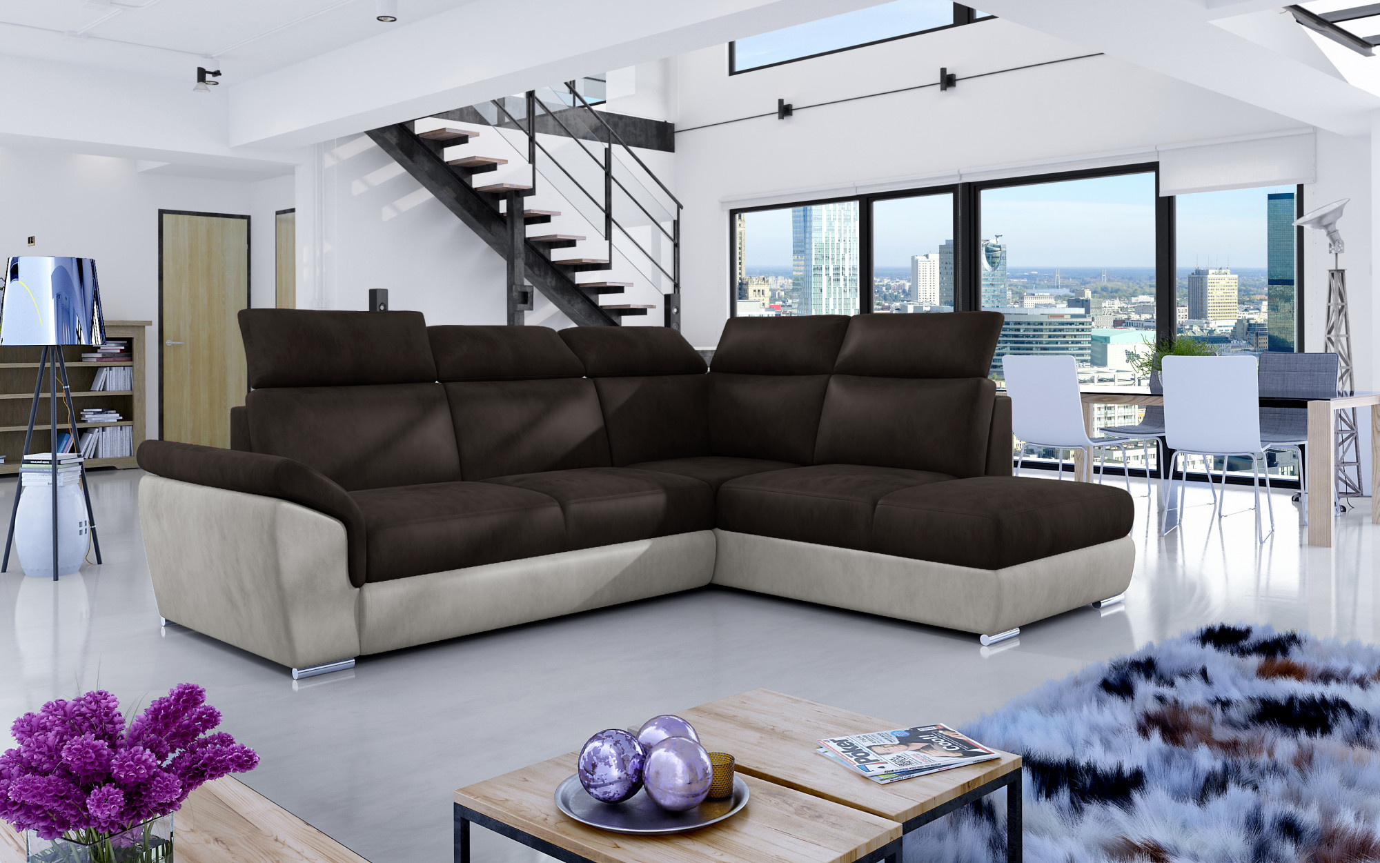 Rohová sedací souprava LORETO, Monolith 29/Monolith 09, Pravá