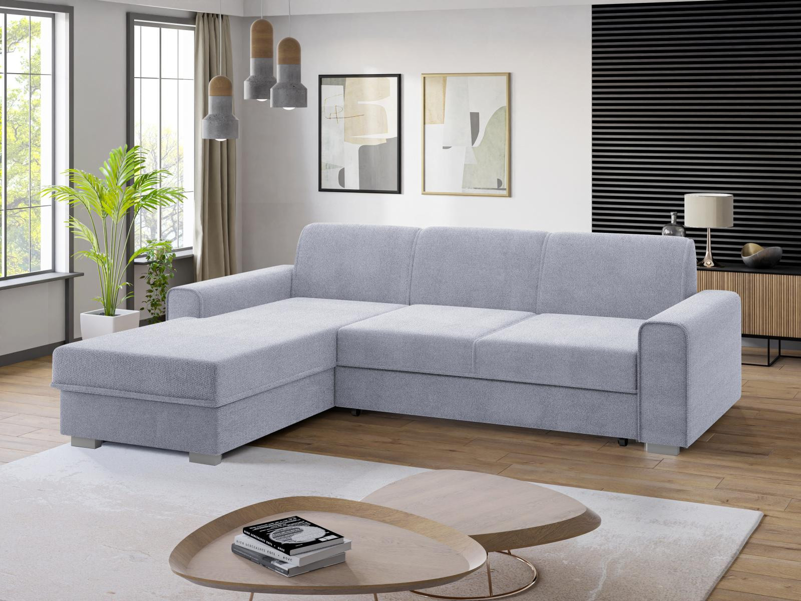 Pohodlná sedací souprava patří k nejdůležitějšímu vybavení každého obývacího pokoje. Sedací souprava Lubor je ideálním spojením pohodlí, praktičnosti a také moderního designu. Tato sedací souprava přímo vybízí k relaxaci např. u sledování televize. Výplň sedáků tvoří kombinace pružin faliste s kvalitní PUR pěnou. Jednoduchým rozkladem pomocí automatu, vznikne lůžko vhodné k příležitostnému spaní. Samozřejmostí je i úložný prostor, který můžete využít třeba na lůžkoviny. Sedací soupravu nabízíme v kvalitní potahové látce, a to v několika barevných provedeních, které také naleznete v naší nabídce. Vyobrazené doplňky a dekorace nejsou v ceně sedací soupravy. Zobrazení barev na fotografii se může od skutečnosti lišit. Fotografie sedací soupravy v rozkladu je pouze ilustrační. Správný barevný odstín je zobrazen na úvodní fotografii.