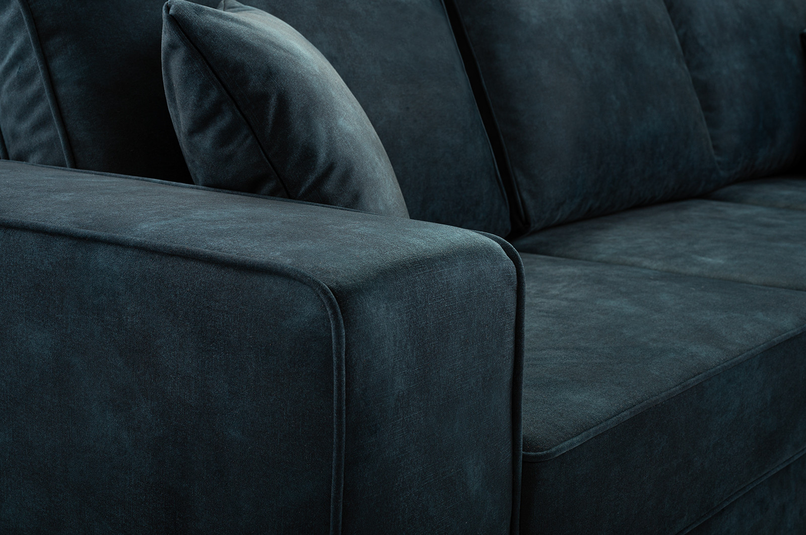 opěradlo je čalouněné látkou, takže rohová pohovka může snadno stát uprostřed místnosti.