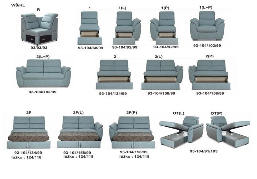 Obrázek je ilustrativní a může být s provedením látky z vyšší třídy s jinou cenou. Cena se upřesní na dotaz, či u potvrzení objednávky a váže se k základnímu provedení sestavy.