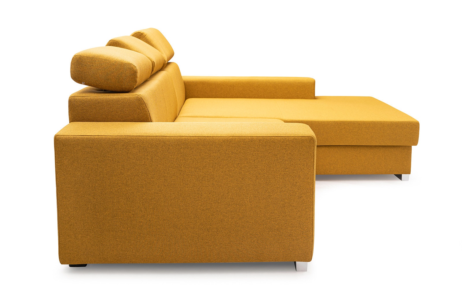 Sedací souprava MEXICO má moderní design, který se skvěle hodí do prostoru minimalistického nebo skandinávského obývacího pokoje. Stylová rohová sedací souprava je rozkládací kus nábytku, který je k dispozici v pravém nebo levém provedení. Rohová sedací souprava MEXICO ve tvaru písmene L má prostornou nádobu na lůžkoviny a je vybavena také funkcí spaní, takže ji lze rozložit. Rohová pohovka pro tři osoby je umístěna na dřevěném rámu a chromovaných nožkách, díky čemuž bude nejen stabilním a odolným kusem nábytku, ale také mimořádně estetickým a originálním. Nábytek je vyplněn vlnitými pružinami a čalounickou pěnou, tedy materiály, které se postarají o správnou pružnost - díky nim se na rohové pohovce ani přes neustálé používání neobjeví nevzhledné otlaky. Rohová sedací souprava MEXICO s bočnicemi je kus nábytku, který může být potažen látkou, koženkou .