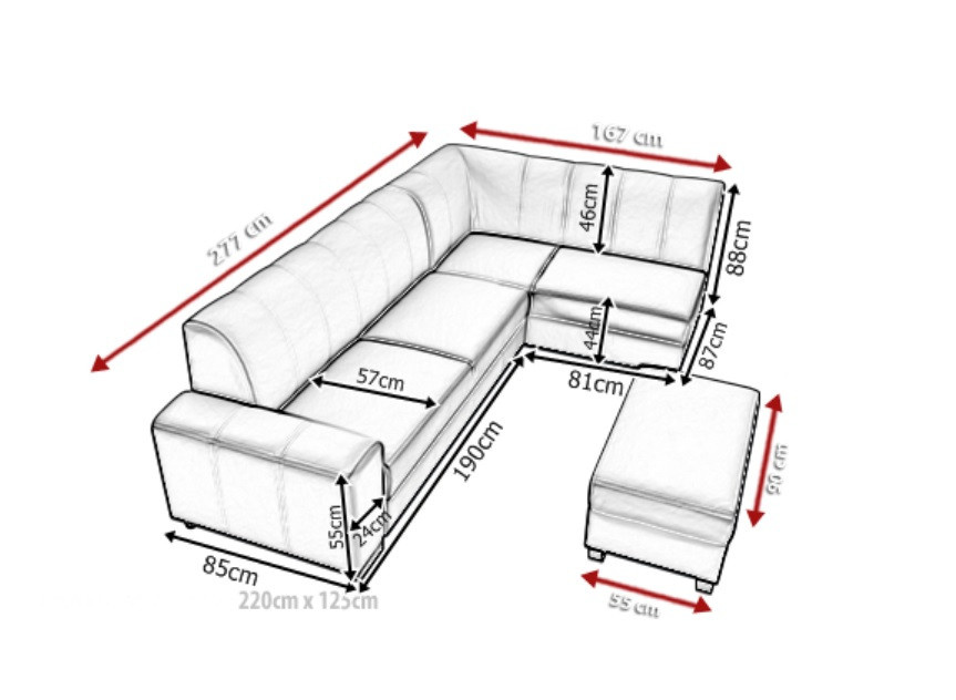 - rohová pohovka je k dispozici v pravém nebo levém provedení