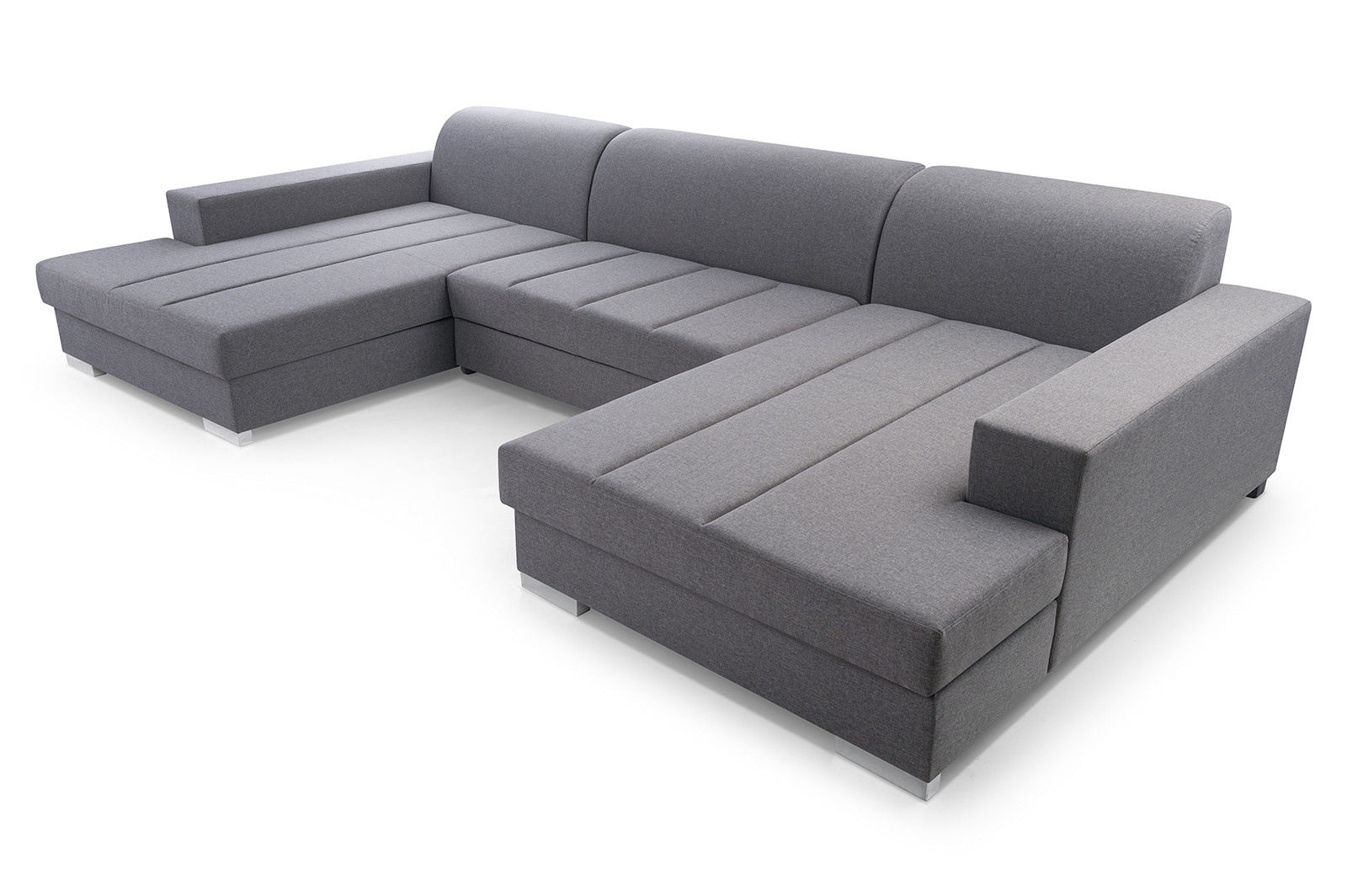 Rohová sedací souprava Mistral U je elegantní sedací souprava ve tvaru písmene U, která má poměrně univerzální tvar, takže ji lze bez větších problémů umístit ke stěně i doprostřed místnosti - jedná se o volně stojící kus nábytku s čalouněným opěradlem. Rozkládací rohová sedačka s rozkládáním, je vybavena 2 úložnými prostory a má funkci spaní. Stabilní a odolnou konstrukci tvoří dřevěný rám a prostor pod čalouněním je zakončen vlnitou pružinou a čalounickou pěnou, díky níž na nábytku nezůstanou nevzhledné otlaky ani deformace. Akcentem, který nábytku dodává originalitu a lehkost, jsou ozdobné stříbrné nohy. Rohová pohovka pro více osob je kus nábytku plně čalouněný kvalitní látkou, jejíž barevné provedení si můžete vybrat. Rohová sedací souprava AKITA U s bočnicemi v základním provedení . Sedací soupravu lze umístit doprostřed místnosti.