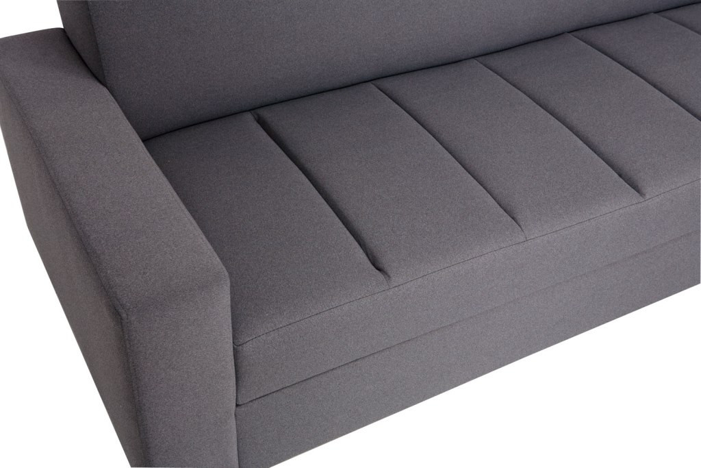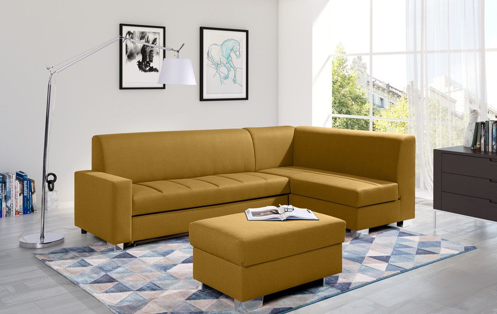 Rohová sedací souprava MIX je k dispozici s moderním a praktickým taburetem, na kterém můžete nejen volně sedět, ale také ho používat jako podnožku při odpočinku. Rozkládací rohová sedací souprava ve tvaru písmene L je k dispozici jako pravostranná nebo levostranná varianta(není universální), takže si prezentovaný model můžete libovolně přizpůsobit svým individuálním preferencím. Rohová sedací souprava stojí na chromových nožkách, díky nimž získává celek moderní charakter. Stylová rohová pohovka s ozdobným prošíváním viditelným na sedáku je čalouněná látkou, kterou si můžete vybrat z široké škály barev. V sedací části jsou použity vlnité pružiny a čalounická pěna T-30, takže na rohové pohovce MIX ani na taburetu nevznikají nevzhledné promáčkliny nebo deformace. Jednostranný nábytek je umístěn na dřevěném rámu pro větší odolnost a stabilitu. Nabízená rohová sedací souprava s mírně profilovaným opěradlem je vybavena funkcí spaní, která umožňuje její efektivní rozložení, a také prostorným kontejnerem na lůžkoviny, do kterého se snadno vejde přikrývka, polštáře a deky. Model MIX spolu s pufem bude působivě vypadat v moderním a minimalistickém uspořádání a zároveň poskytne komfort a pohodlí při odpočinku a spánku.
