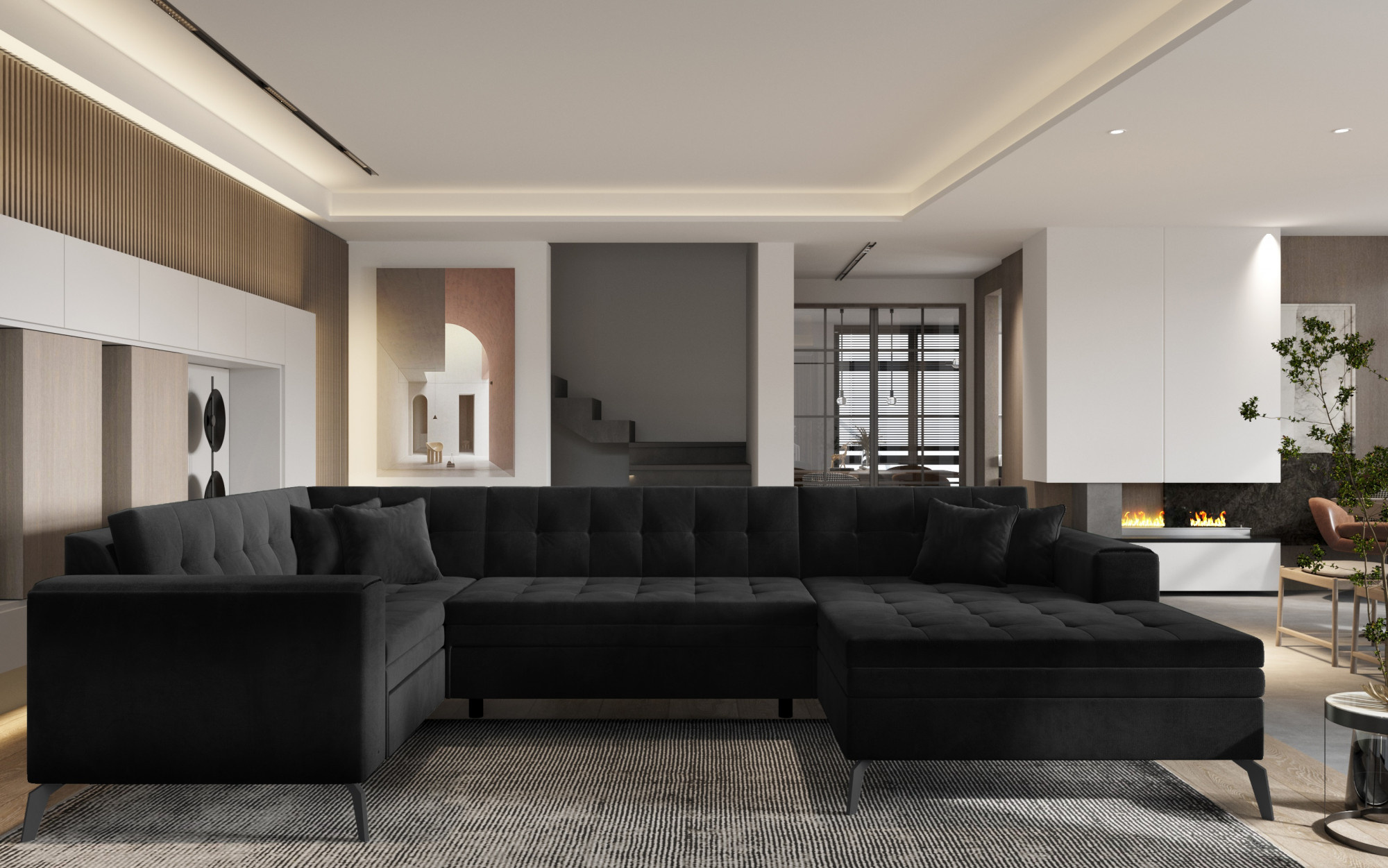 - možnost ustavení sedací soupravy do prostoru - záda sedací soupravy jsou očalouněny stejnou potahovou látkou