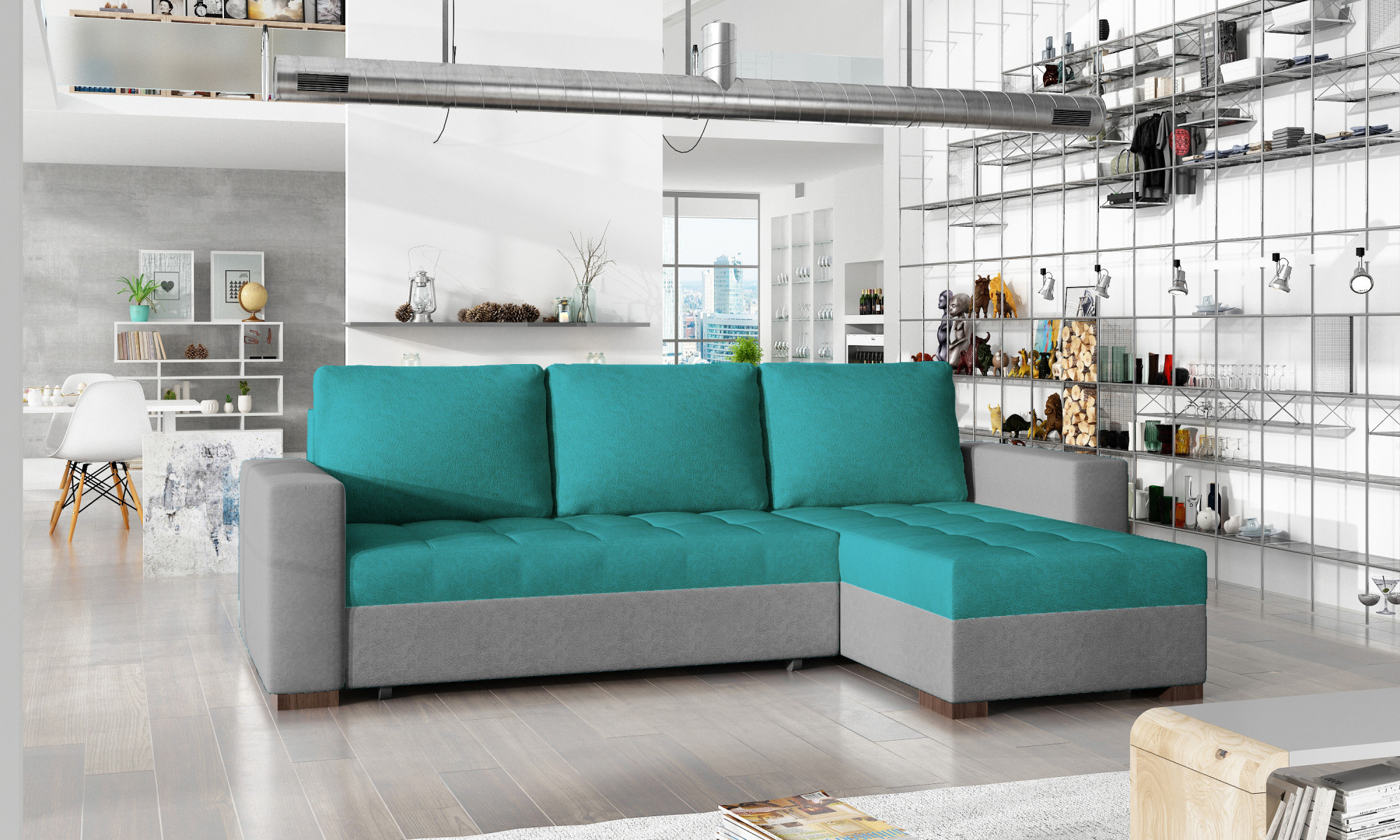 - možnost ustavení sedací soupravy do prostoru - záda sedací soupravy jsou očalouněny stejnou potahovou látkou