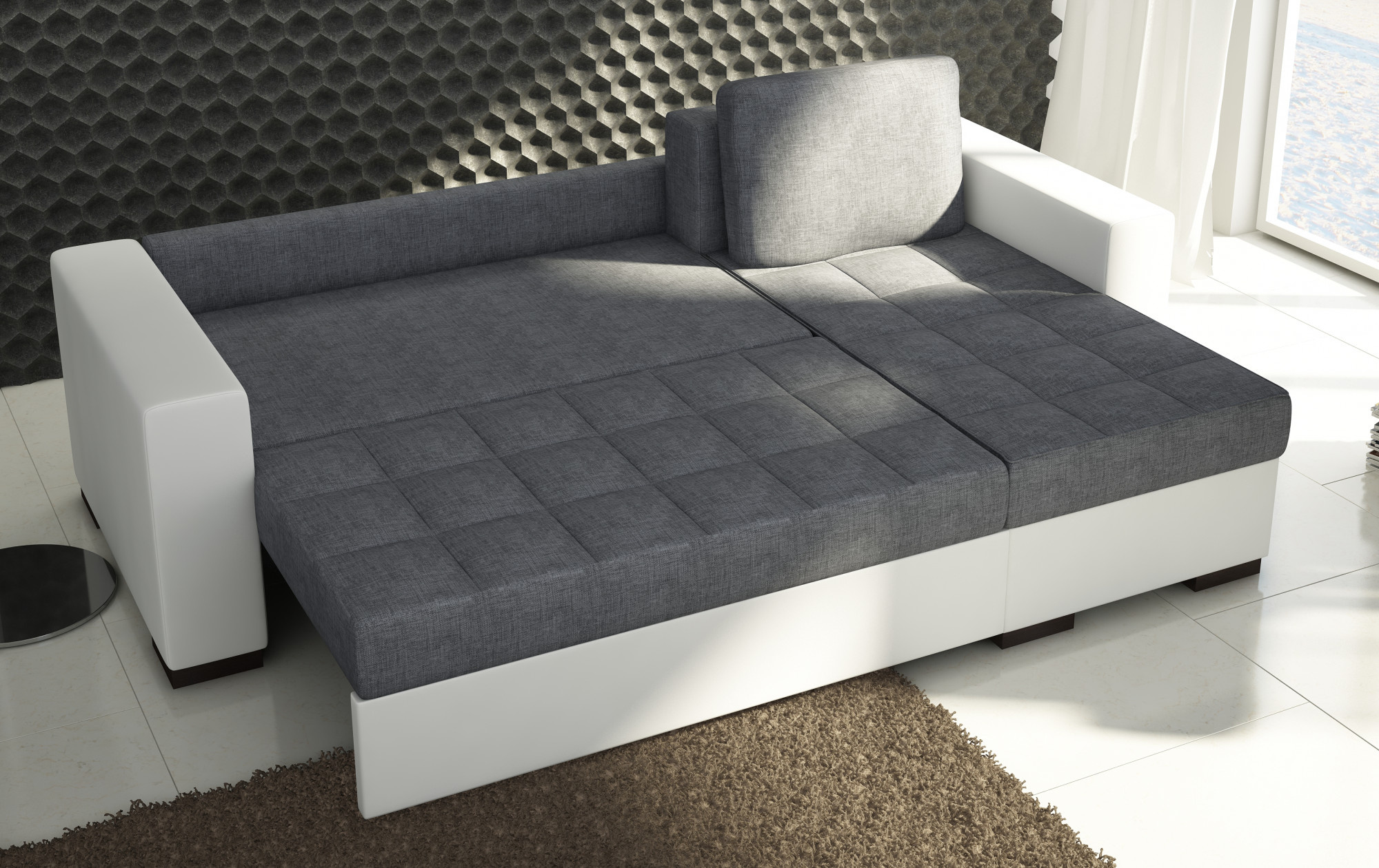 Rohová sedací souprava Newark je vyrobena z kvalitních materiálů. Konstrukce sedací soupravy je vyrobena z kombinace dřeva a dřevotřísky. Sedací část je vyrobena v kombinaci polyuretanové pěny T3040 + T2542 a pružin. Sedací souprava je rozkládací pomocí automatu DL. Sedací souprava má prostorný úložný prostor pro úschovu lůžkovin.