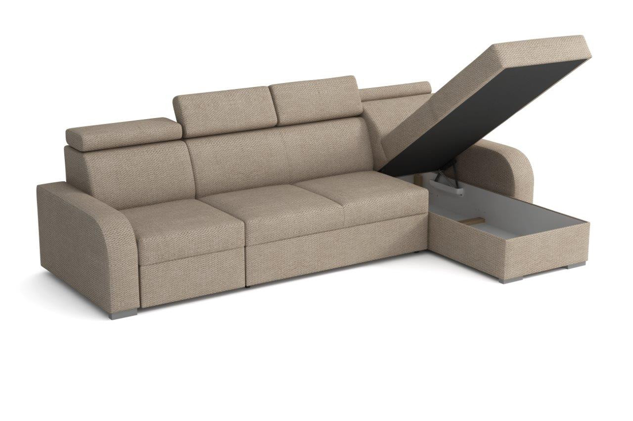 Sedací souprava Norway je vyrobena v jednoduchém elegantním designu, který se hodí do všech interiérů. Její velkou předností univerzální možnost sestavení. Tzn. že podle potřeby můžete mít levou nebo pravou stranu, což je výhoda při zařizování obývacího pokoje. Nemusíte přemýšlet do jakého rohu sedací soupravu postavíte a jednoduše si ji podle potřeby přizpůsobíte. Sedací souprava je rozkládací. Jednoduchým rozložením vytvoříte dostatečně velké lůžko k příležitostnému přespání Vaší návštěvy. Samozřejmostí je i praktický úložný prostor, který můžete využít např. na lůžkoviny. Sedací souprava je potažena kvalitní látkou a nabízíme ji v několika odstínech. Výplň sedáků tvoří kombinace vlnitých pružin s kvalitní HR pěnou. Pro pohodlí při sezení a odpočinku, je sedací souprava vybavena polohovacími opěrkami hlavy. K sedací soupravě lze dokoupit křeslo nebo taburet. Cena je uvedena za rohovou sedací soupravu. Zobrazení barev na fotografii se může od skutečnosti lišit.