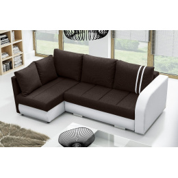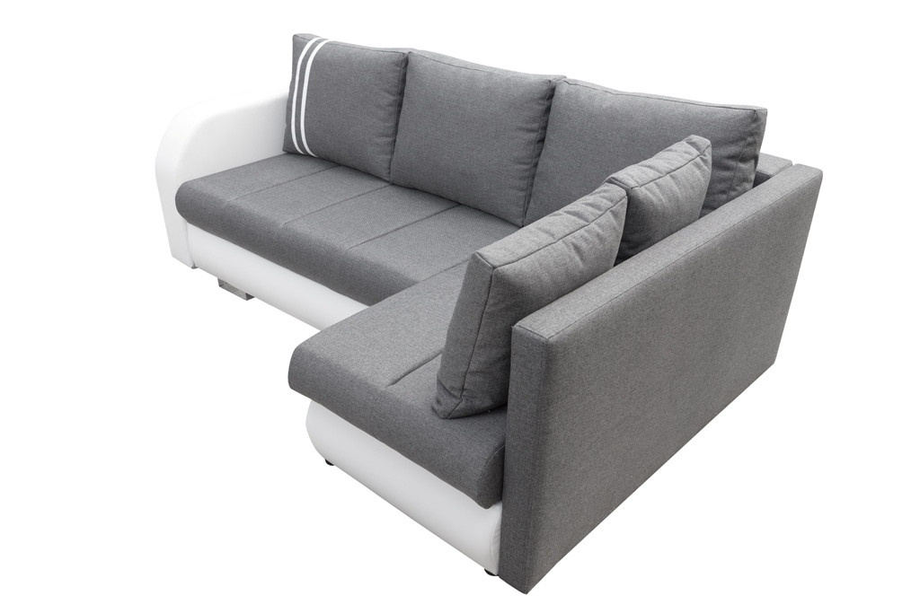 Moderní rohová sedací souprava R-CITY má elegantní design, který osloví milovníky praktických a zároveň vysoce estetických řešení. Rohová sedací souprava ve tvaru L je vybavena automatickým rozkládáním, díky němuž je velmi snadný přístup ke dvěma kontejnerům na lůžkoviny, kam lze bez větších problémů uložit přikrývky, polštáře a peřiny. Rohová pohovka s funkcí spaní umožňuje pohodlné a bezpečné ubytování hostů. Rohová sedací souprava je k dispozici v pravém nebo levém provedení podle vašeho výběru. Dřevěný rám poskytuje nábytku dostatečnou odolnost a stabilitu. Sedák je čalouněný čalounickou pěnou a vlnitými pružinami, které se starají o zachování pružnosti nábytku, takže na něm nevznikají nevzhledné promáčkliny ani deformace. Model R-CITY se dodává s dekorativními polštářky, které jsou dokonalým doplňkem moderního uspořádání. Originálním akcentem rohové sedací soupravy jsou chromované nohy, které podtrhují stylový charakter konstrukce. Rohová pohovka s bočnicemi zaujme na první pohled dekorativně prošívaným sedákem. Volně stojící kus nábytku je čalouněný látkou; na výběr je také látka Magic Home odolná proti skvrnám, která je k dispozici ve druhé cenové skupině. Barevné provedení rohové sedací soupravy R-CITY si můžete vybrat podle dostupného vzorníku barev.