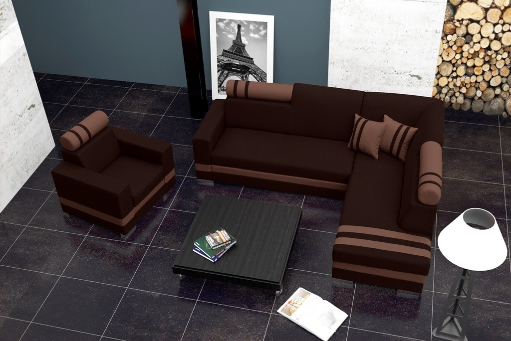 Rohová sedací souprava R1 je moderního tvaru, který osloví náročné uživatele, kteří oceňují nejen vysokou estetiku nábytku, ale také jeho praktičnost a pohodlí při každodenním používání. Rohová sedací souprava ve tvaru písmene L je k dispozici v pravostranném a levostranném provedení, takže si každý najde variantu, která nejlépe vyhovuje jeho individuálním preferencím. Rohová sedací souprava s bočnicemi se bude skvěle hodit do prostoru obývacího pokoje nebo i obývacího pokoje, protože díky funkci spaní, která umožňuje nábytek rozložit, na něm budou moci přespat hosté. Moderní rohová sedací souprava je vyplněna vlnitými pružinami a čalounickou pěnou, díky čemuž si nábytek zachovává požadovanou pružnost. Volně stojící rohová pohovka s dřevěným rámem a chromovanými nohami je doplněna dekorativními polštáři. Rozkládací rohová pohovka je vybavena dvěma zaoblenými opěrkami hlavy, které zaručují maximální pohodlí při relaxaci. Model R1 je vybaven prostorným úložným prostorem na lůžkoviny, do kterého budete moci bez větších problémů uložit přikrývky, peřiny a polštáře, a nezabírat tak cenné místo v komodách a skříních.