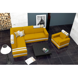Rohová sedací souprava R1 je moderního tvaru, který osloví náročné uživatele, kteří oceňují nejen vysokou estetiku nábytku, ale také jeho praktičnost a pohodlí při každodenním používání. Rohová sedací souprava ve tvaru písmene L je k dispozici v pravostranném a levostranném provedení, takže si každý najde variantu, která nejlépe vyhovuje jeho individuálním preferencím. Rohová sedací souprava s bočnicemi se bude skvěle hodit do prostoru obývacího pokoje nebo i obývacího pokoje, protože díky funkci spaní, která umožňuje nábytek rozložit, na něm budou moci přespat hosté. Moderní rohová sedací souprava je vyplněna vlnitými pružinami a čalounickou pěnou, díky čemuž si nábytek zachovává požadovanou pružnost. Volně stojící rohová pohovka s dřevěným rámem a chromovanými nohami je doplněna dekorativními polštáři. Rozkládací rohová pohovka je vybavena dvěma zaoblenými opěrkami hlavy, které zaručují maximální pohodlí při relaxaci. Model R1 je vybaven prostorným úložným prostorem na lůžkoviny, do kterého budete moci bez větších problémů uložit přikrývky, peřiny a polštáře, a nezabírat tak cenné místo v komodách a skříních.