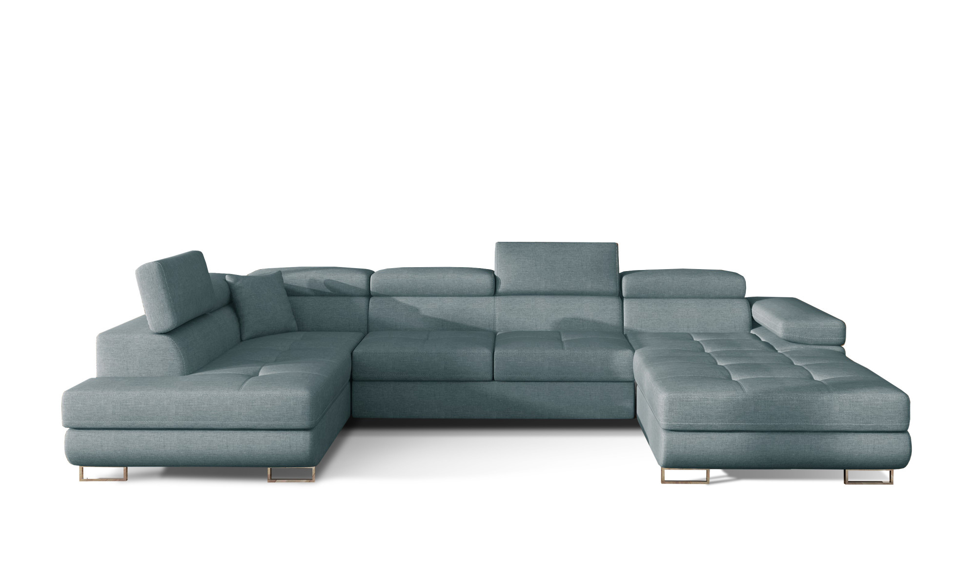 Rohová sedací souprava ve tvaru U RODRIGO je vyrobena z kvalitních materiálů. Konstrukce sedací soupravy je vyrobena z kombinace dřeva a dřevotřísky. Sedací část je vyrobena v kombinaci polyuretanové pěny T3040 s vlnitými pružinami. Na opěru sedací soupravy je použita polyuretanová pěna T2542. Sedací souprava je rozkládací pomocí rozkladu typu Delfín. Sedací souprava má prostorný úložný prostor pro úschovu lůžkovin.