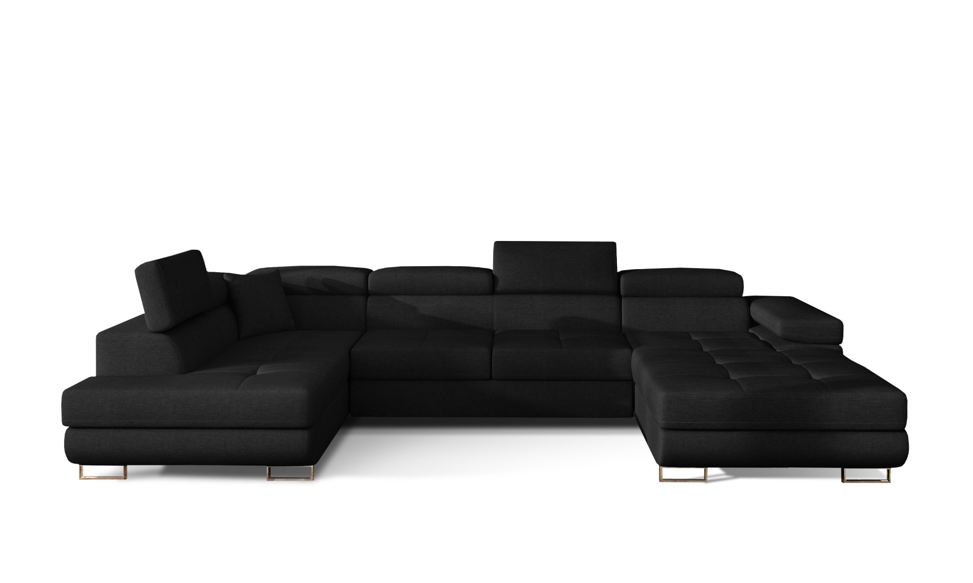 Rohová sedací souprava ve tvaru U RODRIGO je vyrobena z kvalitních materiálů. Konstrukce sedací soupravy je vyrobena z kombinace dřeva a dřevotřísky. Sedací část je vyrobena v kombinaci polyuretanové pěny T3040 s vlnitými pružinami. Na opěru sedací soupravy je použita polyuretanová pěna T2542. Sedací souprava je rozkládací pomocí rozkladu typu Delfín. Sedací souprava má prostorný úložný prostor pro úschovu lůžkovin.
