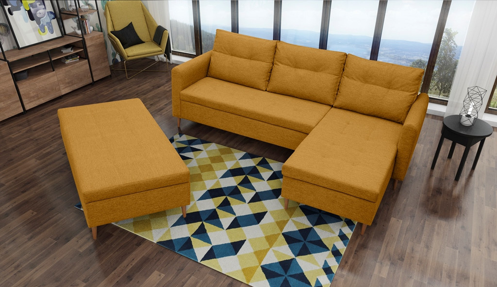 Rohová sedací souprava Areon, je vhodná do všech moderních interiérů. Pohodlnost sezení zajišťuje kombinace pružin s kvalitní PUR pěnou a 3 velké opěrné polštáře. V ceně sedací soupravy je velký taburet s úložným prostorem, který můžete využít jako další místo k sezení, nebo ho v případě potřeby můžete přistavit k sedací soupravě a vytvořit tak prostor pro občasné přespání Vaší návštěvy. Sedací soupravu nabízíme v kvalitní potahové látce v několika barevných provedeních. Záda sedací soupravy jsou čalouněná, takže je vhodná i pro umístění do prostoru. Úvodní fotografie je ilustrační. Vzorek látky, ve které bude sedací souprava dodána, je vyobrazen v doplňkových fotografiích. Vyobrazené doplňky a dekorace nejsou v ceně.