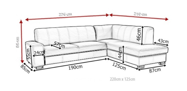 - rohová pohovka je k dispozici v pravém nebo levém provedení