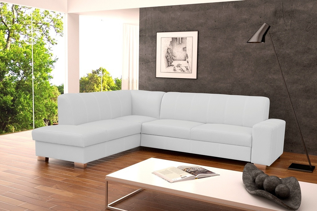 Rozkládací rohová pohovka SENATOR je moderní kus s jednou stranou, který se bude skvěle vyjímat v prostoru obývacího pokoje i soukromé pracovny. Rohová sedací souprava je čalouněná látkou. Rozkládací rohová pohovka je k dispozici v pravém nebo levém provedení, takže ji lze bez větších problémů plně přizpůsobit individuálním preferencím. Dřevěný rám rohové pohovky zaručuje odolnost a správnou stabilitu nábytku. Nábytek upoutá pozornost chromovanými nohami, které zdůrazňují moderní charakter konstrukce. Volně stojící rohová pohovka určená k samostatné montáži má funkci spaní, takže můžete pohodlně ubytovat své hosty, kteří si pohodlně a bezpečně odpočinou. Model SENATOR je na sedáku a profilovaném opěráku vyplněn vlnitou pružinou a čalounickou pěnou T-30, které zajišťují správnou pružnost - nábytek se nebude nevzhledně deformovat, a zachová si svůj estetický vzhled.