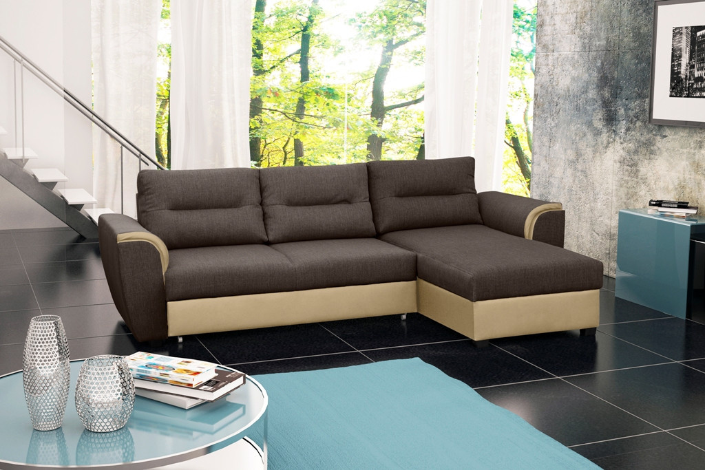 Moderní rohová sedací souprava TOMEK je ideální pro uspořádání interiéru obývacího pokoje, který je na jedné straně reprezentativním prostorem a na druhé straně místem pro odpočinek. Rohová sedací souprava ve tvaru písmene L je k dispozici ve dvou variantách výběru stran - pravé nebo levé -, takže ji lze přizpůsobit jakémukoli tvaru místnosti. Rohová sedací souprava TOMEK s bočnicemi na sedáku je vyplněna vlnitou pružinou a čalouněním z pěny T-30, takže na sedací soupravě nevznikají nevzhledné deformace způsobené sezením. Představená rohová sedací souprava s dřevěným rámem zaručuje svým uživatelům komfort a pohodlí při sezení, stejně jako pevnost své konstrukce, která je celá doplněna chromovanými nožkami. Protože je rohová pohovka volně stojícím kusem nábytku, má také čalouněná záda - lze ji umístit nejen ke stěně, ale také do středu místnosti. Model TOMEK je vybaven úložným prostorem na lůžkoviny pro uložení přikrývek, polštářů a peřin. Rohová sedací souprava s bočnicemi má funkci spaní, která umožňuje její rozložení. Nabízená rohová sedací souprava může být vyhotovena v široké škále barev.