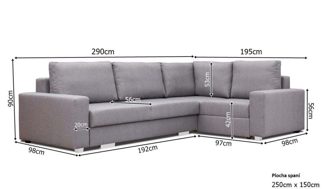- rohová pohovka je k dispozici v pravém nebo levém provedení