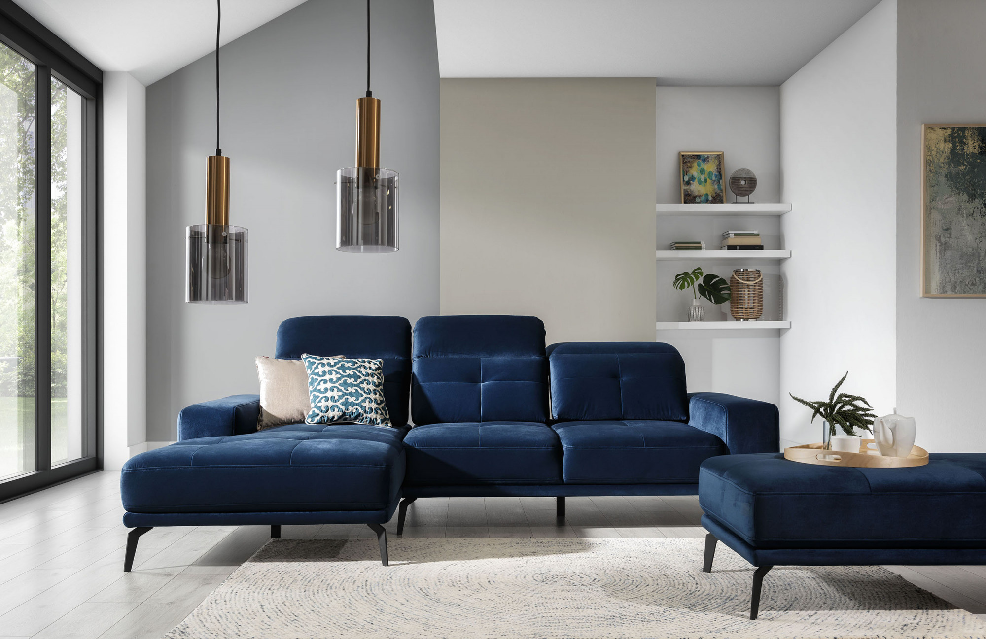 - možnost ustavení sedací soupravy do prostoru - záda sedací soupravy jsou očalouněny stejnou potahovou látkou