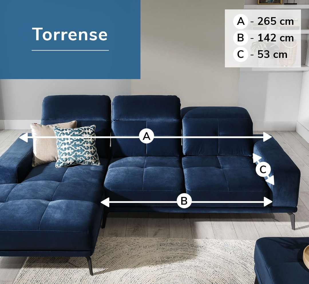Rohová sedací souprava Torrense je vyrobena z kvalitních materiálů. Konstrukce sedací soupravy je vyrobena z kombinace dřeva a dřevotřísky. Sedací část je vyrobena v kombinaci HR pěny a bonelů. Sedací souprava není rozkládací. Pomocí taburetu můžete vytvořit plochu na spaní 215 x 140 cm.