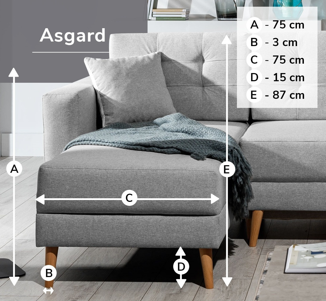 Rohová sedací souprava ASGARD L je UNIVERSÁLNÍ - stranu rohu si můžete měnit podle Vašeho přání. Sedací souprava je vyrobena z kvalitních materiálů. Konstrukce sedací soupravy je vyrobena z kombinace dřeva a lamina. Sedací část je vyrobena z polyuretanové pěny T3040 a pružin, opěrná část je vyrobena z polyuretanové pěny T2542. Sedací souprava má úložný prostor pro úschovu lůžkovin.