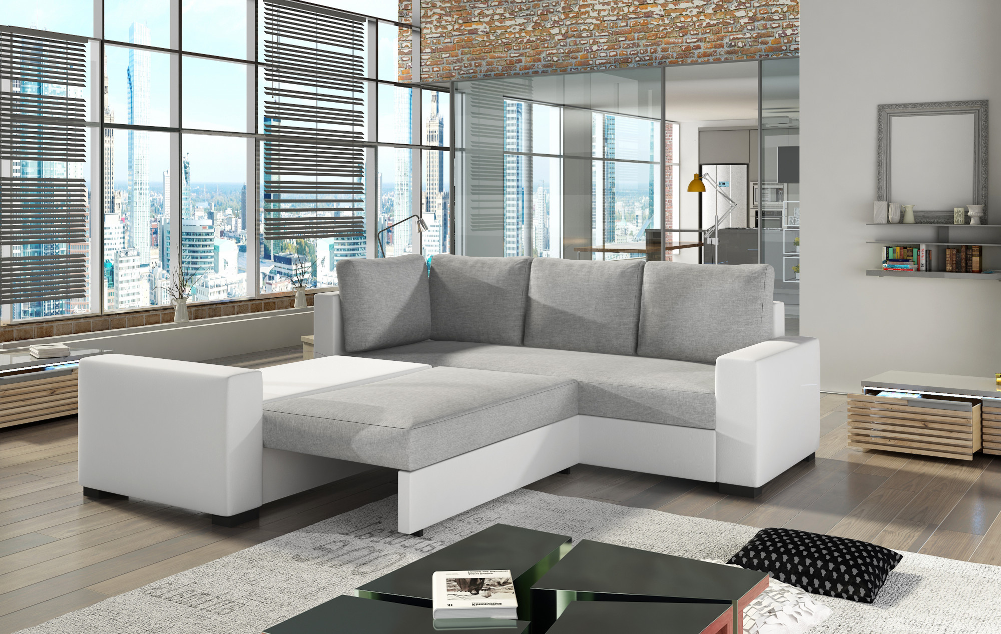 Sedací soupravu lze rozložit a vytvořit tak spací plochu o rozměrech 135x195 cm.